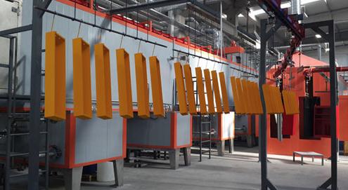 粉末噴涂生產線是一種涂覆工藝,將噴涂介質粉末裝料并附著到接地的工件上。粉末主要通過靜電吸附附著在工件上,帶有粉末的工件必須經過加熱,固化和流平處理才能最終形成完整的涂膜。自動噴涂生產線主要由水分干燥爐,粉末固化爐,懸掛式輸送鏈,雙工位自動粉末噴涂室,自動粉末噴涂裝置,加熱裝置和電氣控制系統組成。